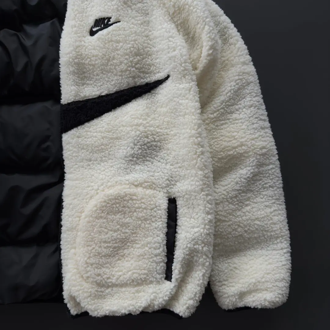 The Jacket is designed to highlight your uniqueness and adapt to different clothing styles. With its versatile reversible design, you can easily pair it with jeans for a casual urban style or sweatpants for a more casual look. With a classic black and white color palette, the jacket will perfectly complement any of your looks, adding a modern touch.